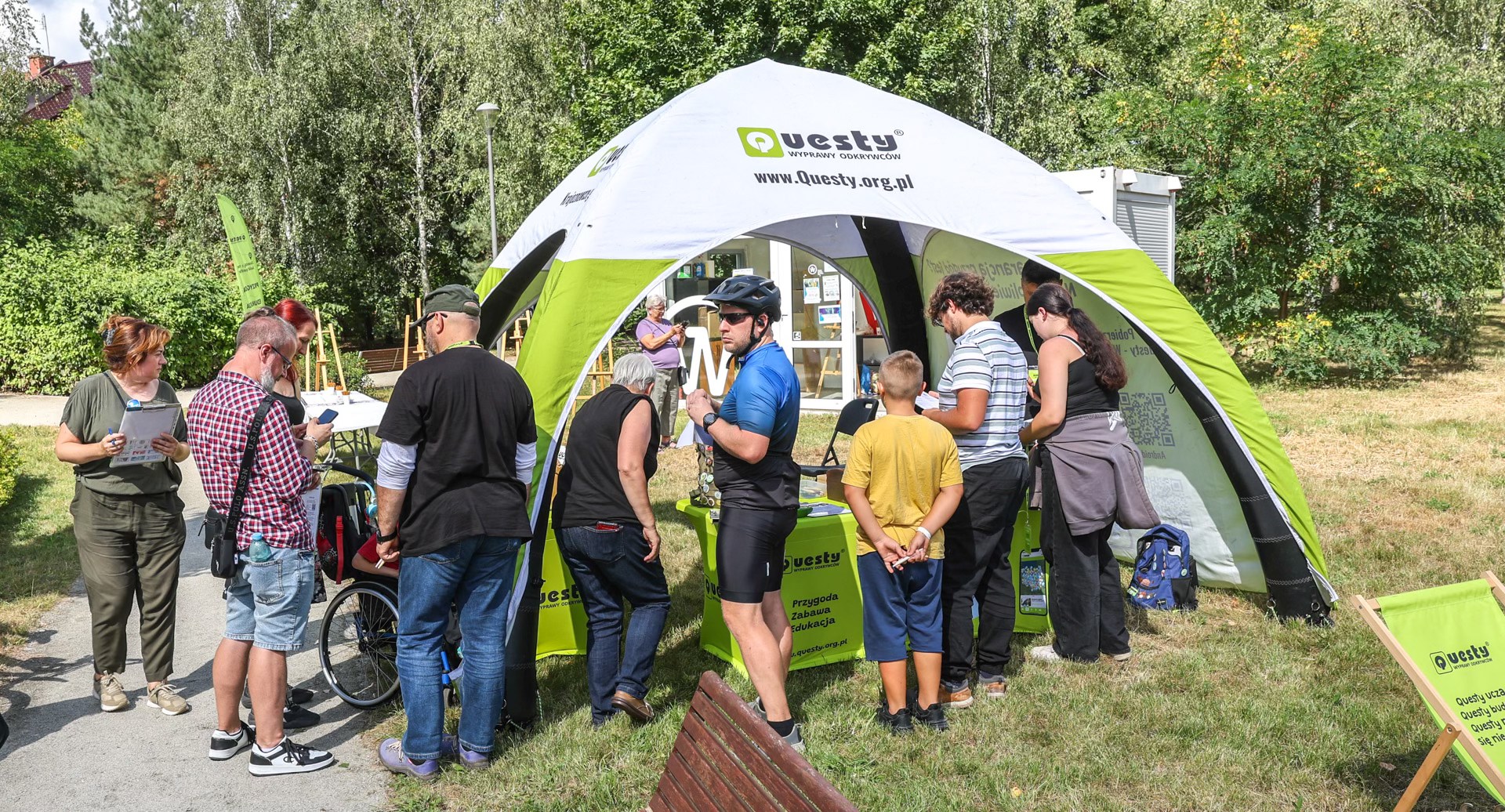 Biało-zielony namiot, powiewające wokół questowe flagi i zachęty ze strony wolontariuszy oraz questowej ekipy sprawiły, że nikt nie oparł się temu, by spróbować zmierzyć się z zagadkami questu spotkania oraz trasy prowadzącej po mieście.